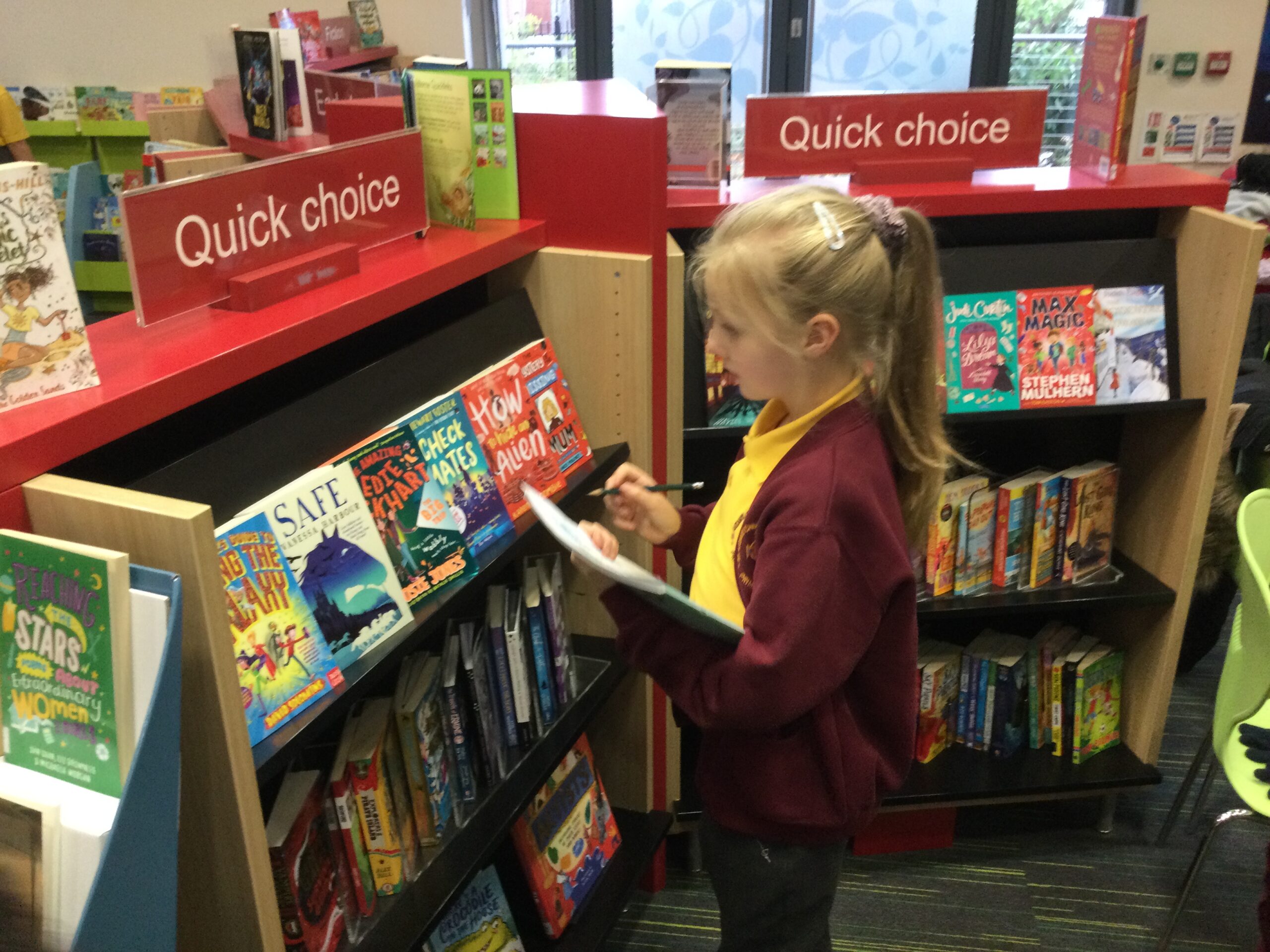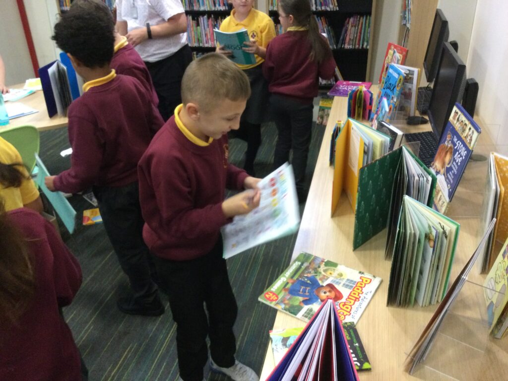 The children took part in book bingo where they had to find books according to a specific criteria. It helped the children look at a range of books which are on offer in the library, there are so many! We are very lucky to have such a big library on our doorstep.