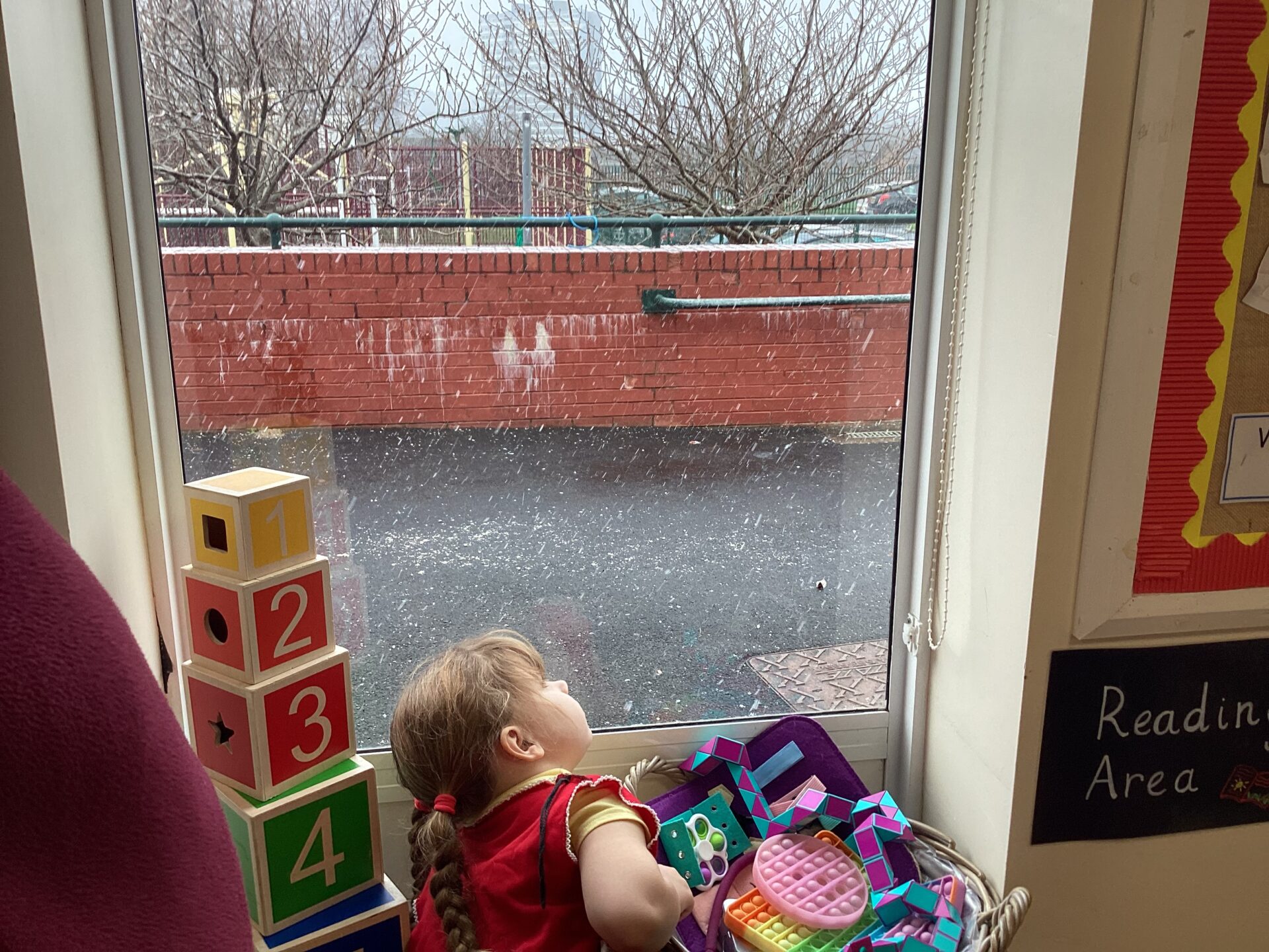 As we were decorating the tree, the snow was falling outside. Some of us enjoyed looking out of the windows. It made it us all feel warm inside!