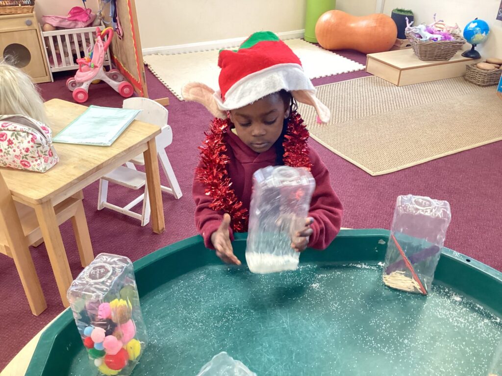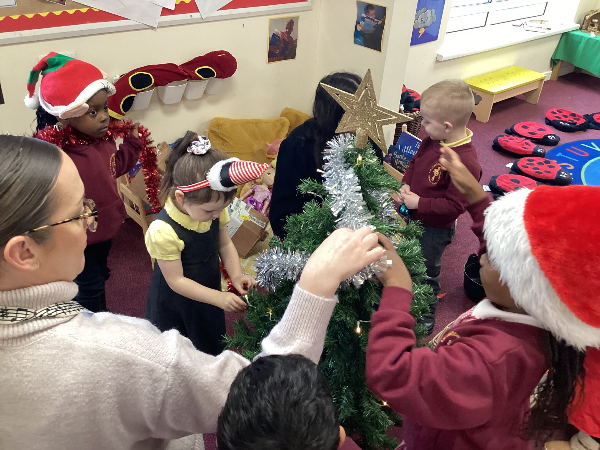 Yesterday, we decorated our class Christmas tree with bright lights, colourful baubles and lots of sparkly tinsel and beads. At the end, we put a golden star on the top of the tree!
