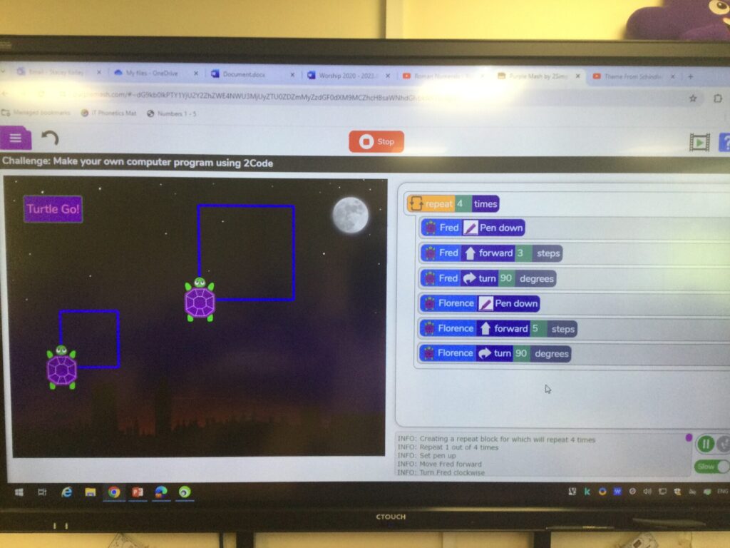 The children in year 3 love their computing lessons and look forward to each week’s lesson to find out which new skill we are learning that day! This half term we have been looking at coding and the children are becoming extremely competent with their coding skills. This week we focused on using the “repeat” command to make a turtle draw a square. The children were amazed with the instant results and then began experimenting to try and alter the size of the square, the amount of turtles which were moving around and also the speed in which the turtles were moving. Super work year 3!