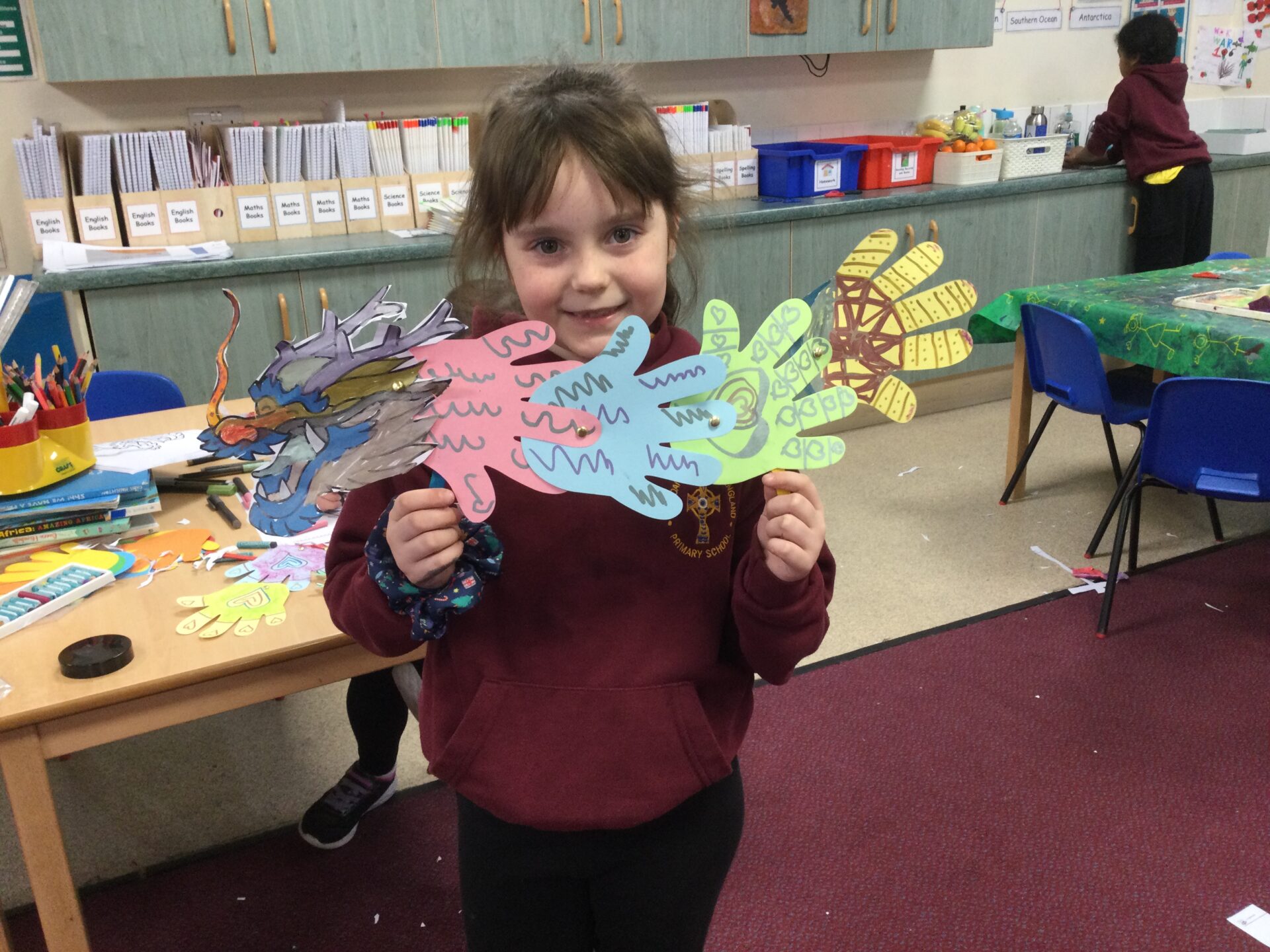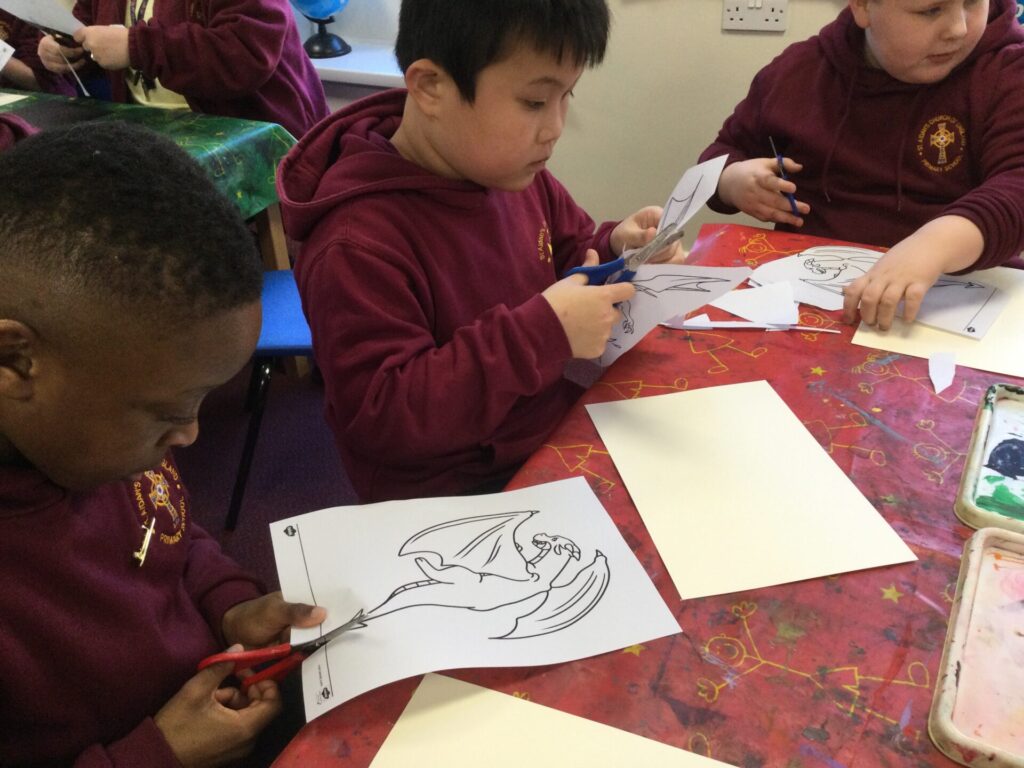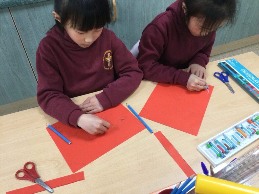 This half term, Year 3 and 4 have enjoyed taking part in Chinese arts, crafts and cooking. We have made lanterns (which lights up!), dancing dragon puppets and a piece of dragon silhouette printing artwork. We have also cooked noodles, fried rice and vegetables in satay sauce with ramen. The children have worked very hard to create their arts and crafts, as well as trying new Chinese cuisine. A huge well done Year 3 and 4!