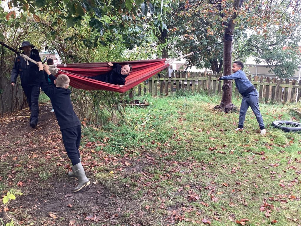 The children were so excited to take part in different activities. They enjoyed painting, using the mud kitchen to make food for the muddy monsters, building dens and playing on the swings and hammocks. The children showed fantastic teamwork across the afternoon.