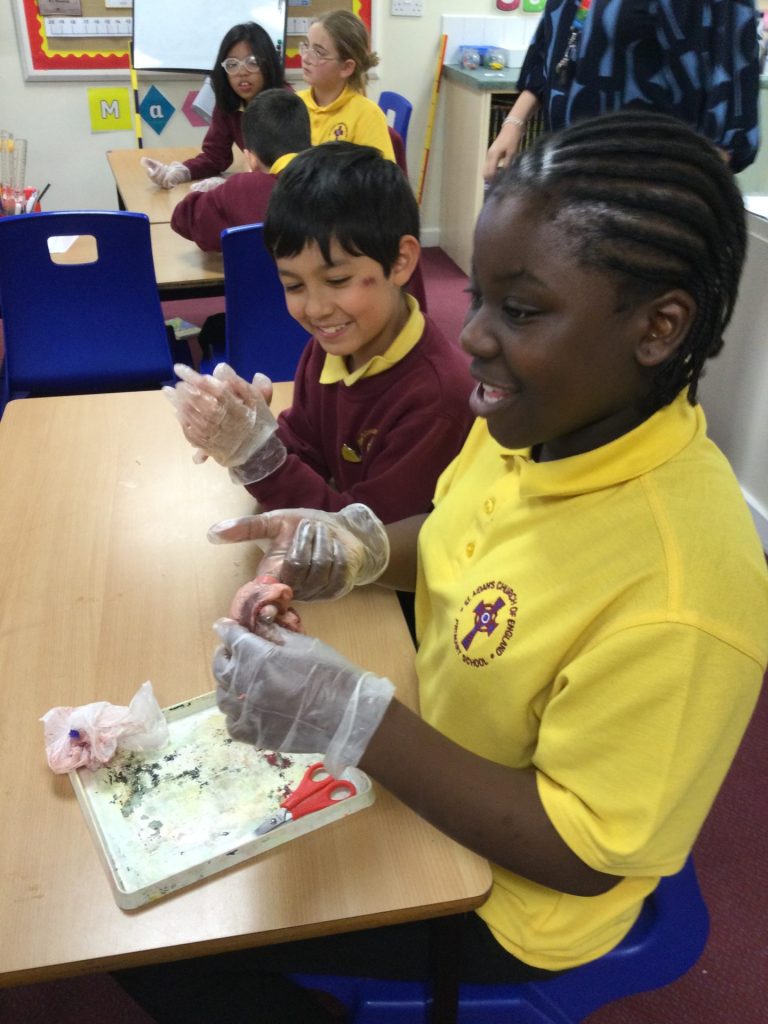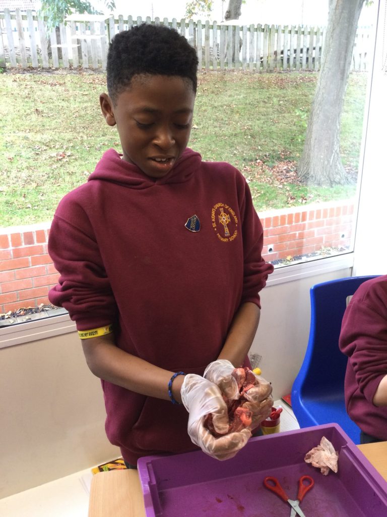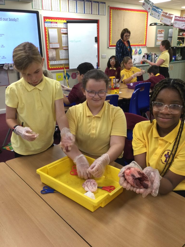 This half term in Science, we are learning about the circulatory system and how blood gets around our body. This afternoon, after looking at diagrams and reading about the different parts of a mammal’s heart, we enjoyed dissecting hearts to take a closer look! We were able to find the four chambers of the heart as well as identify the pulmonary vein, pulmonary artery, aorta and vena cava.