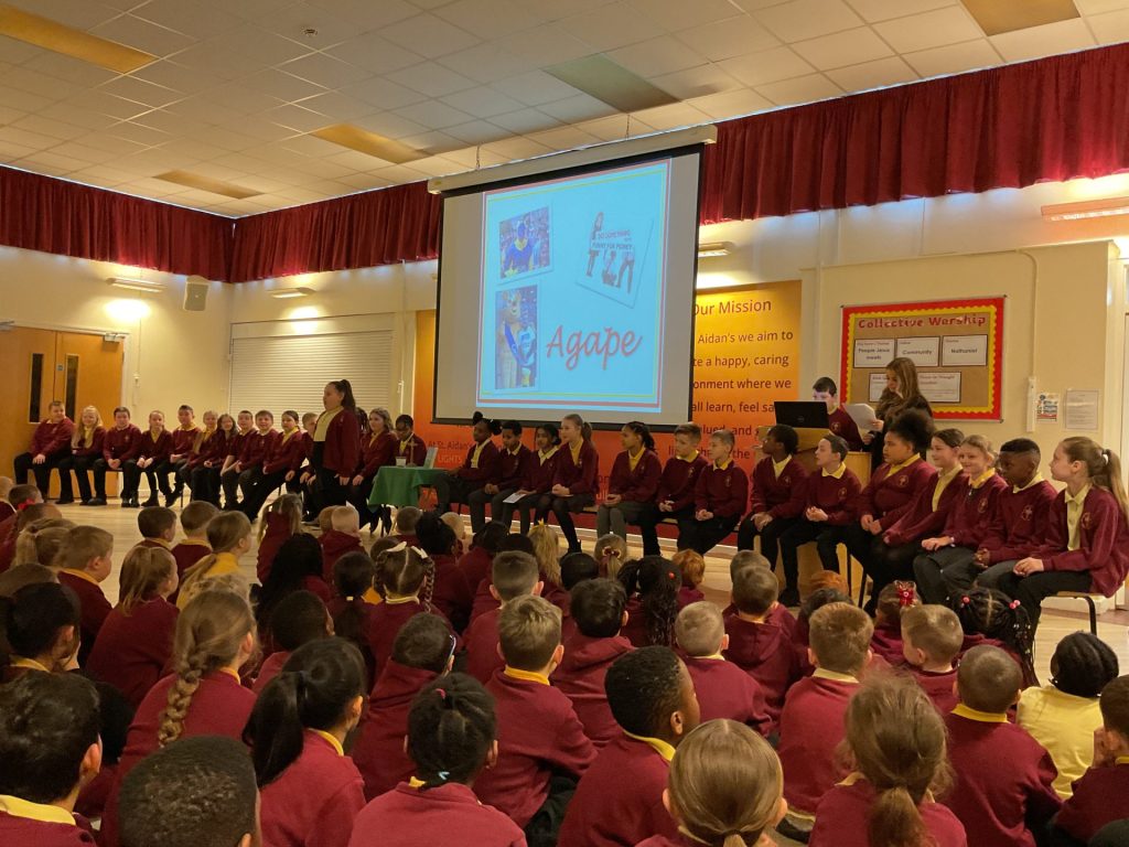 On Friday 14th February it was Year 5’s turn to lead the school assembly. As it was Valentine’s Day, the theme to choose was easy! We worked together to create a fantastic assembly about love. We taught the school the story of St Valentine, with wonderful clear speaking and fantastic acting. We also shared the important message that God loves us all. We decided to do this with an upbeat Christian song and actions to make it even more entertaining. Finally, we discovered that the Greek have four words for various types of love, as love for your family is a very different love to your love of ice cream. We hope we all started your Valentine’s Day with love and joy. We most certainly enjoyed presenting it to you all.