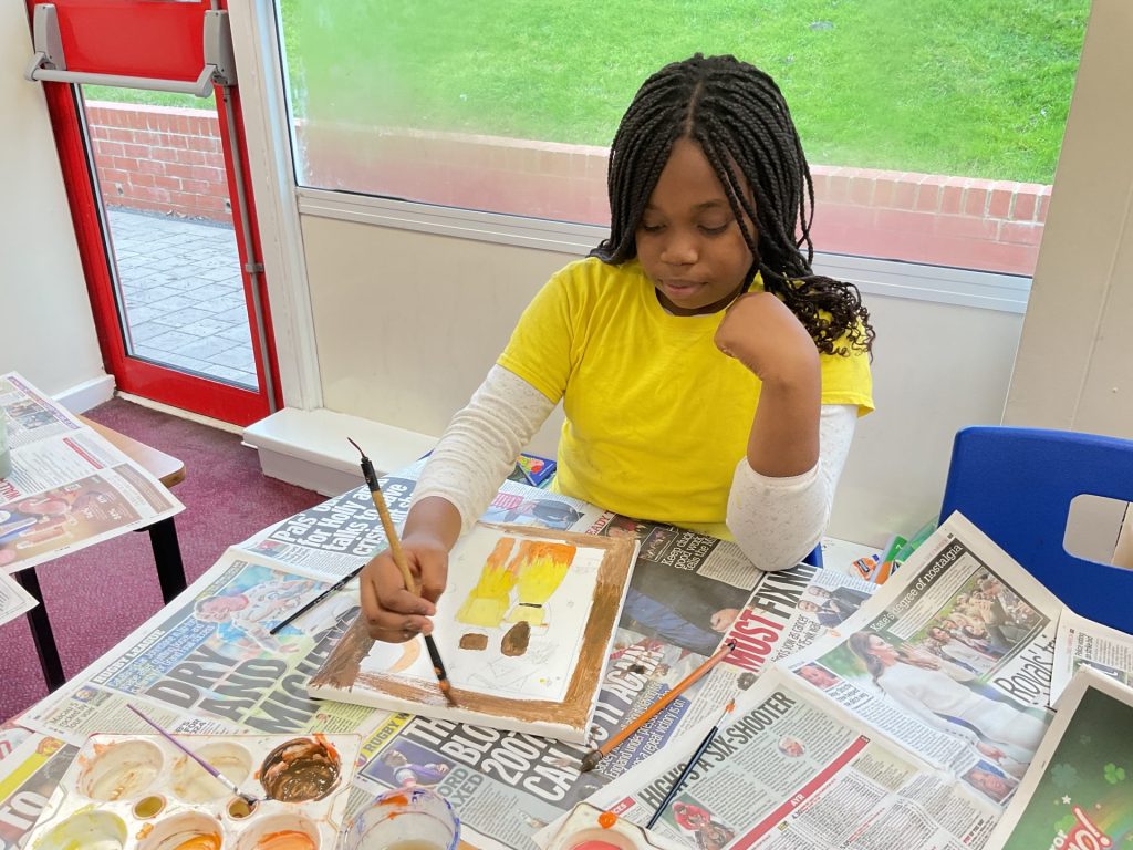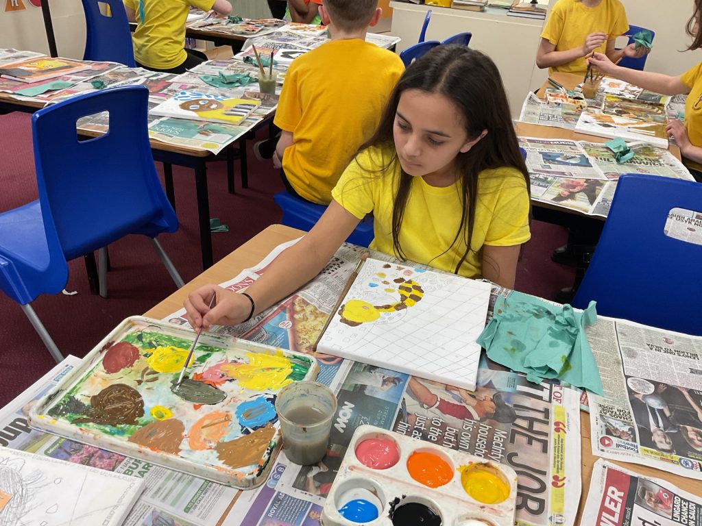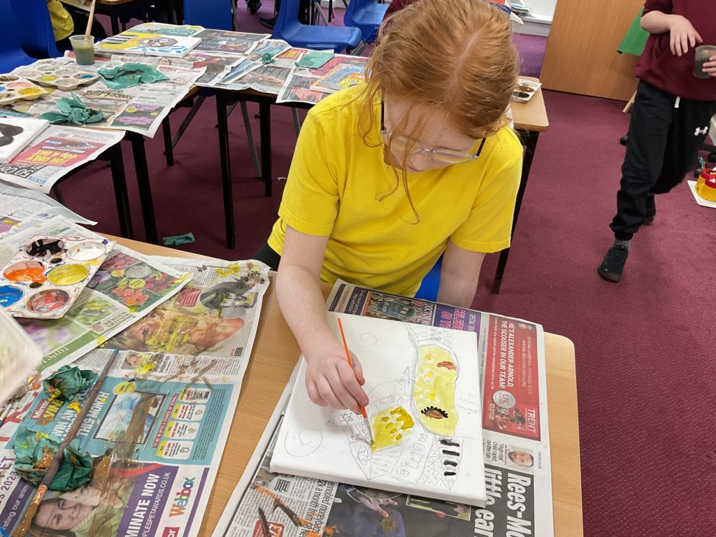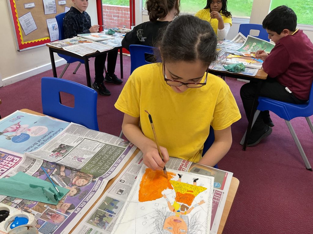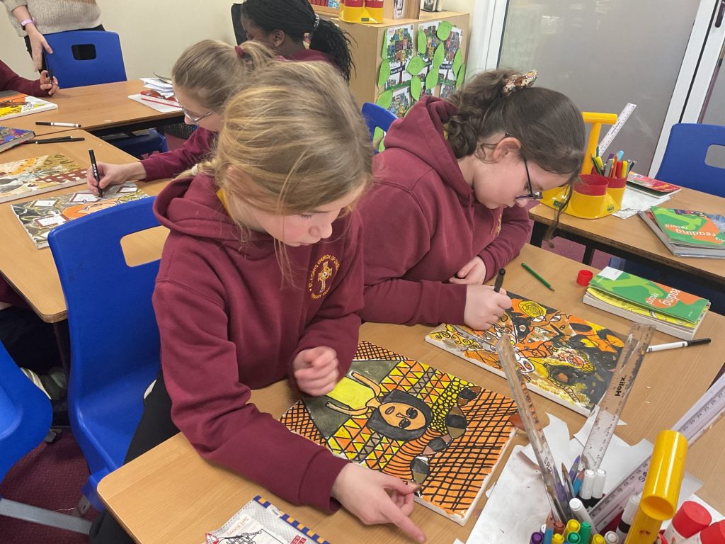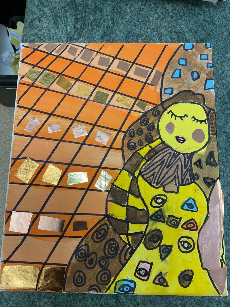 This half term, Year 6 have been learning about the Golden Period of Gustav Klimt. We began by looking at a range of his artwork. When we placed them in chronological order, we noticed that over time, Klimt’s artwork became less realistic and more mythical in style. He also began using a colour palette of different shades and tints of orange and yellow as well as adding gold leaf to his artwork. Inspired by Klimt’s ‘Golden Woman’, we created our own artwork of a mythical figure using different shades and tones of orange and yellow. We imitated the style of Gustav Klimt by adding metallic accents to our painting using metallic card.