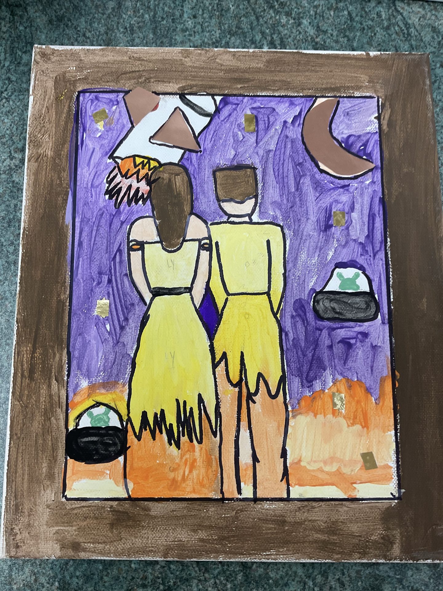 This half term, Year 6 have been learning about the Golden Period of Gustav Klimt. We began by looking at a range of his artwork. When we placed them in chronological order, we noticed that over time, Klimt’s artwork became less realistic and more mythical in style. He also began using a colour palette of different shades and tints of orange and yellow as well as adding gold leaf to his artwork. Inspired by Klimt’s ‘Golden Woman’, we created our own artwork of a mythical figure using different shades and tones of orange and yellow. We imitated the style of Gustav Klimt by adding metallic accents to our painting using metallic card.