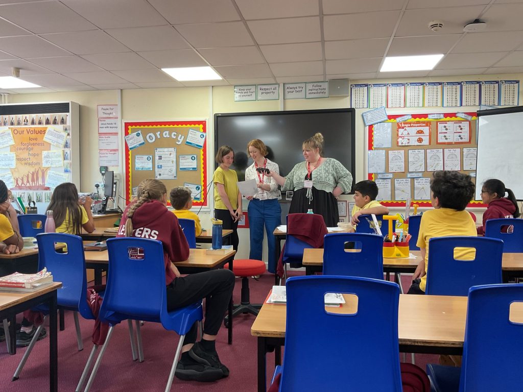 Last week, we enjoyed taking part in the Riverside Routes project 2025. We worked with a local theatre company, artist, author and an actress to create our own original story inspired by the Staithes and the Gateshead quayside so that visitors and local residents using the footpath could be entertained whilst walking. Inspired by our quayside walk on Tuesday afternoon, we created characters and a plot before engaging in drama to retell the main events of our story. Then after hearing the first draft of our story, we provided feedback to the author and created artwork to engage our audience. On Friday afternoon, we recorded an audiobook together as a class, considering what each character would sound like as well as creating some sound effects to add interest to the listener.