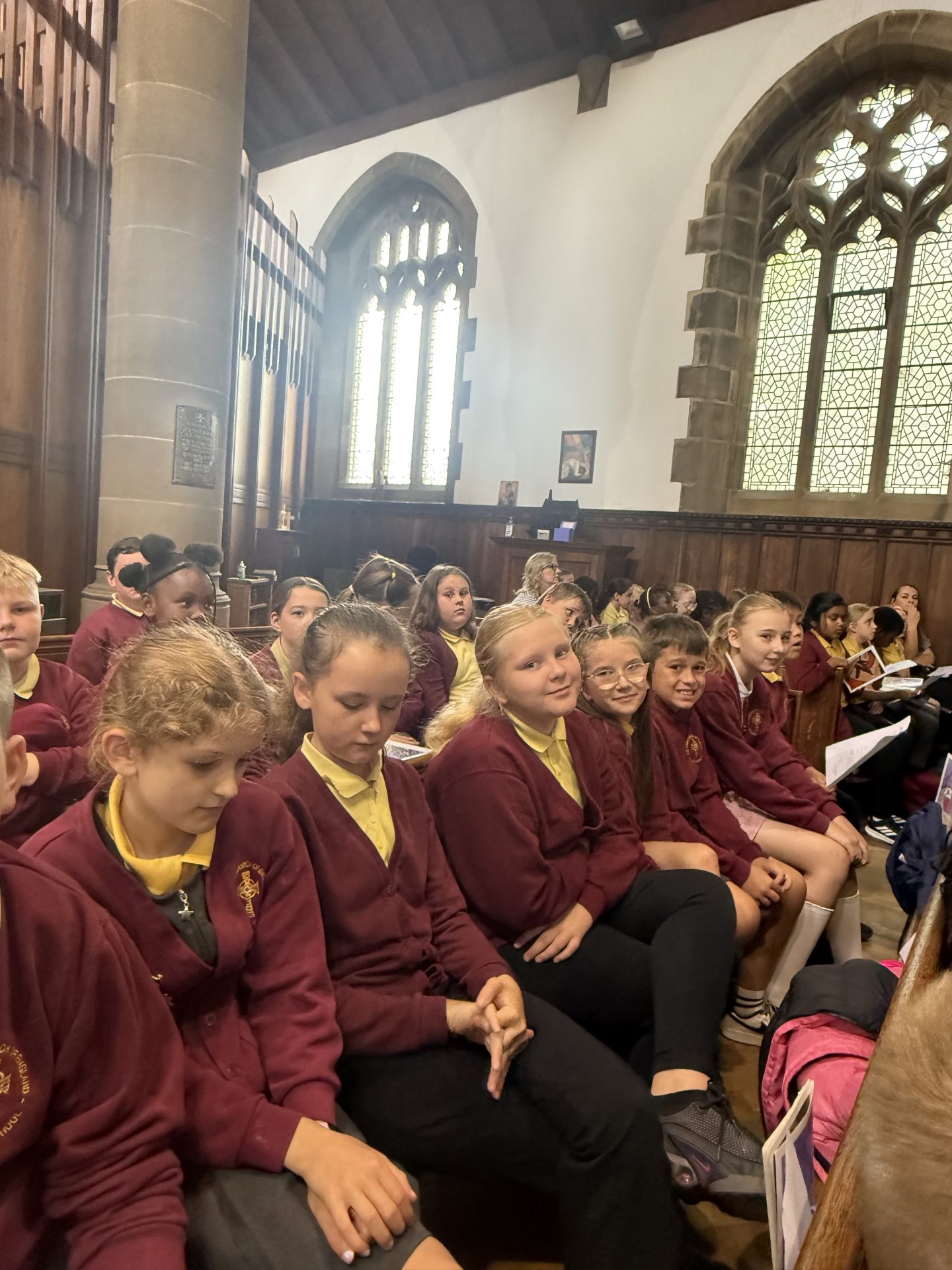 On Tuesday, all the children from Reception class to Year 6 were warmly welcomed by Reverend Hannah to St Chad’s Church for the end of year service. We walked sensibly to the church and were able to take in the beautiful stained glass windows, carvings and amazing architecture of the church. A child in Year 5 commented “There is so much to take in I don’t know where to look!” The readings were orated with amazing clarity and the singing was as beautiful as ever. Well done St Aidan’s and thank you Reverend Hannah.
