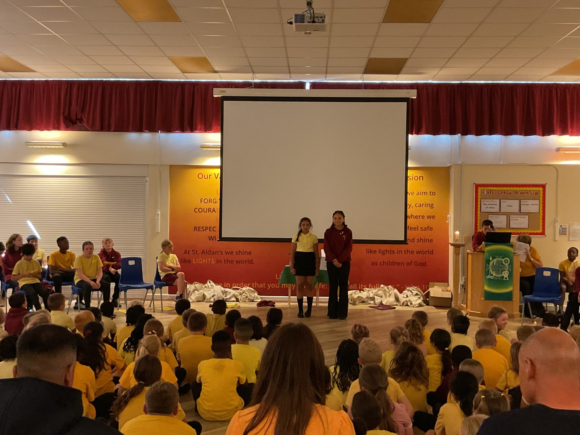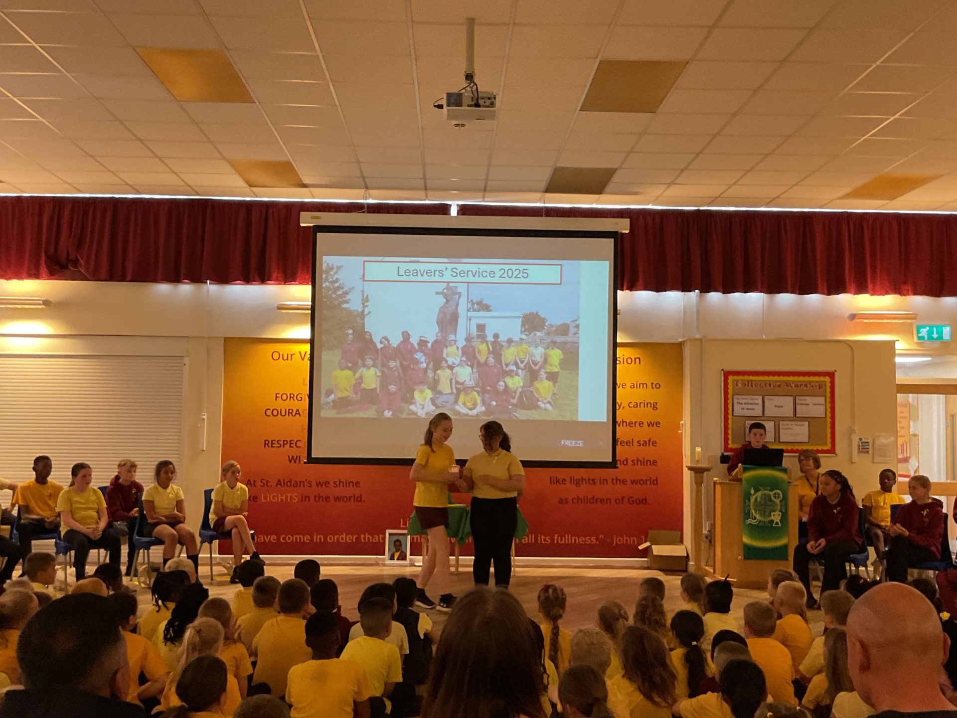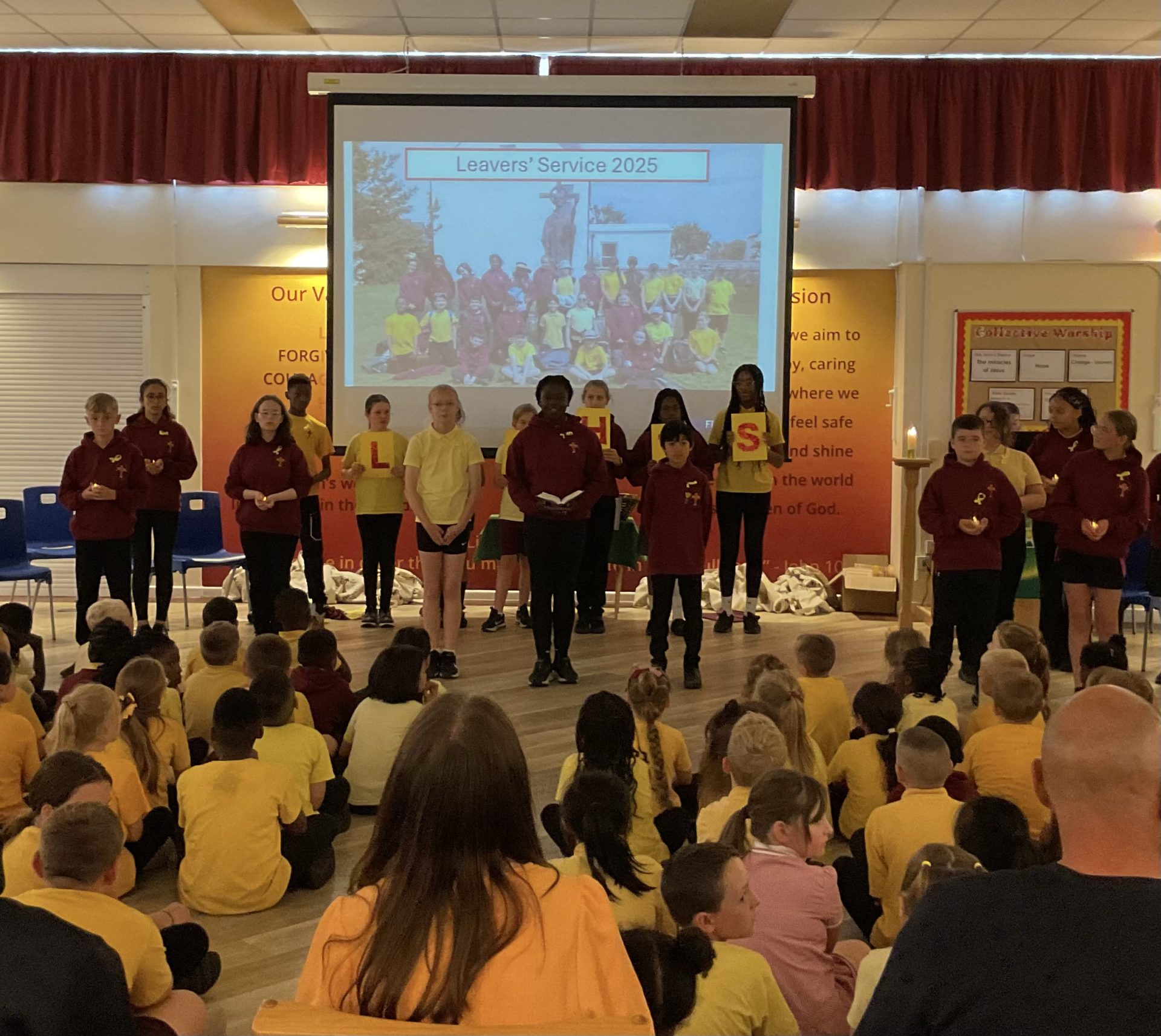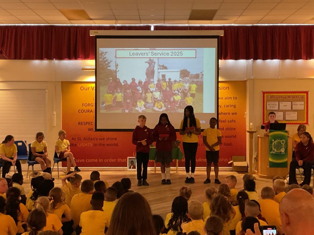 To celebrate Year 6’s time at St Aidan’s, yesterday we held our Year 6 Leavers’ Service in school for our peers and teachers, our parents and loved ones. We led a reflective collective worship, sharing how St Aidan’s has taught us how to shine like lights in the world and look forward to our futures at secondary school and beyond with hope, courage and wisdom. We remembered with fondness memories from the past eight years and shared this with our family and friends – lots of giggles and smiles were had whilst we reminisced together! After performing a song that we wrote together in music lessons this half term (with help from Side by Side Arts!), we then performed a dance accompanied by a video montage of photographs of us over the years. We took a moment to say thank you to all of the people that have supported us during our time at St Aidan’s and asked for God’s help when looking forward to the challenges that secondary school may bring. It was wonderful to gather together, have time to reflect and to celebrate our achievements at St Aidan’s.