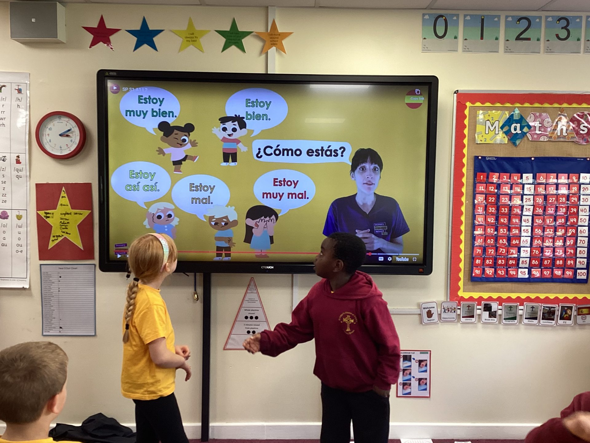 Year 3 were then able to hold a simple conversation with their friends, greeting one another and asking how they are.