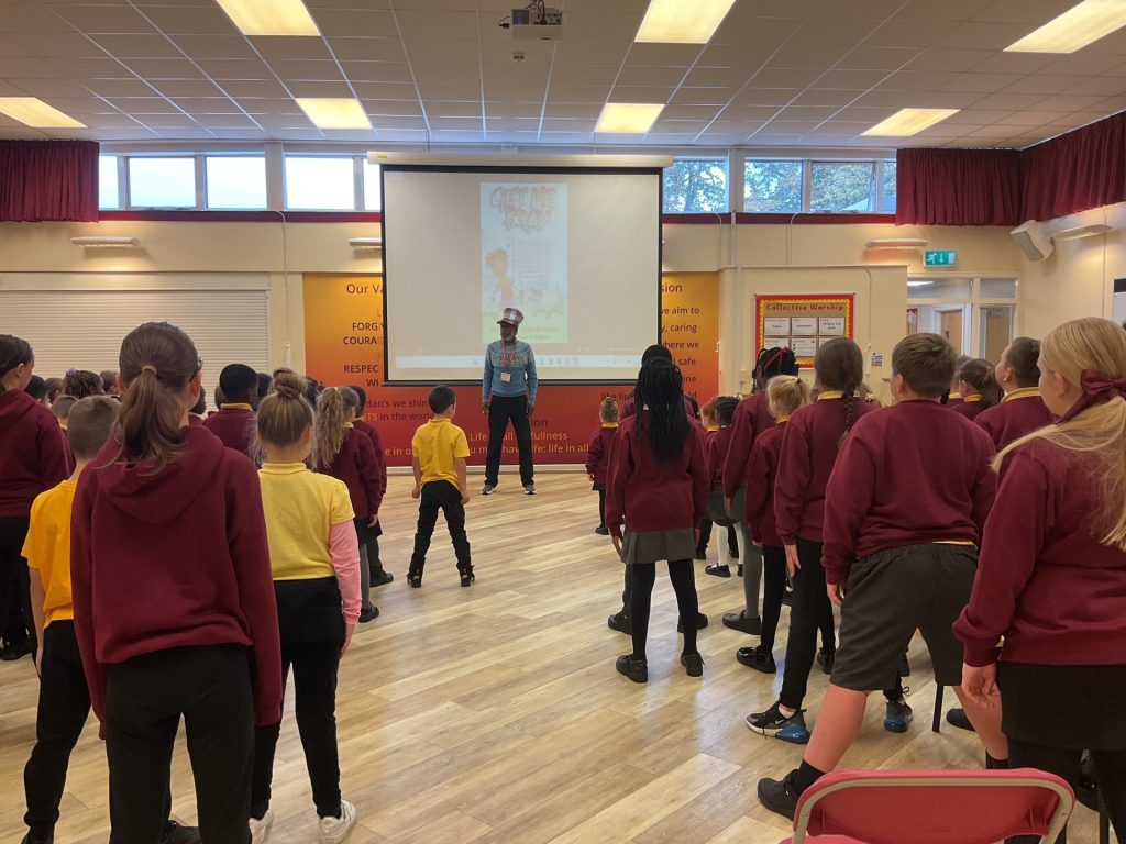 On Thursday 2nd October, the children at St Aidan’s celebrated National Poetry Day by welcoming poet Michael de Souza, the creator of Rastamouse, into our school. We began the day with an interactive, whole-school assembly where we listened to, recited and performed aloud some of Michael’s brilliant poems… even the teachers got involved! Then Michael delivered workshops across the day with Years 3-6, where children used their knowledge of rhyme to write and perform their own humorous poems. The children thoroughly enjoyed the day and our teachers were very impressed with their poetry writing skills!
