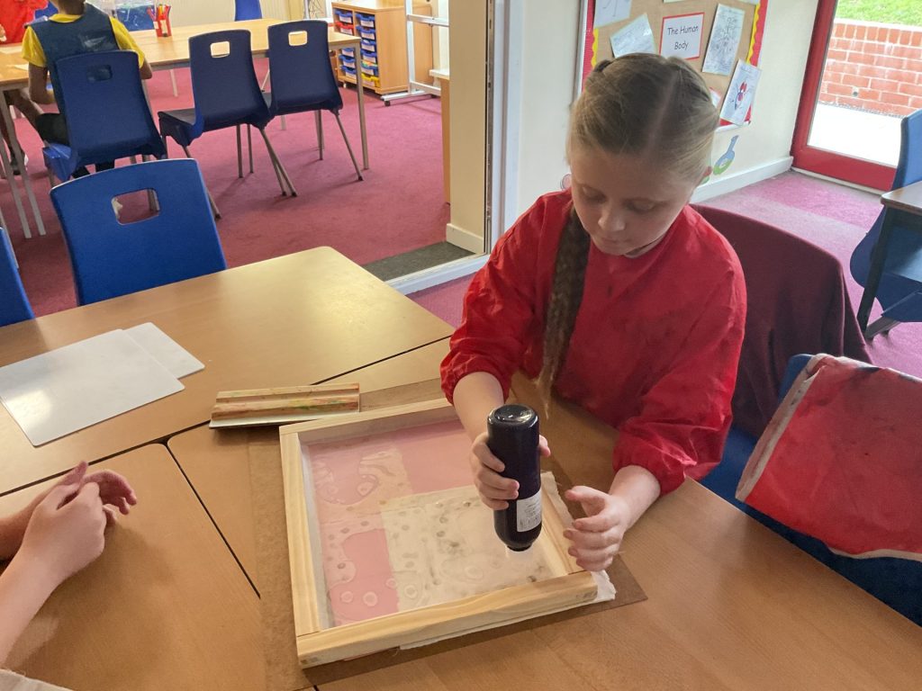 In art this half term, we have been learning about the contemporary Japanese artist, Yayoi Kusama and using her work as inspiration for our own artwork. We found out that her artwork often contains lots of bright, vivid colours, repeating dot patterns and angular shapes. Some of her artwork even includes pumpkins and peppers! We used the technique of screen printing to recreate one of her art installations in New York. Each of us designed and printed a pattern on some fabric and we created a collage of our artwork as a class.