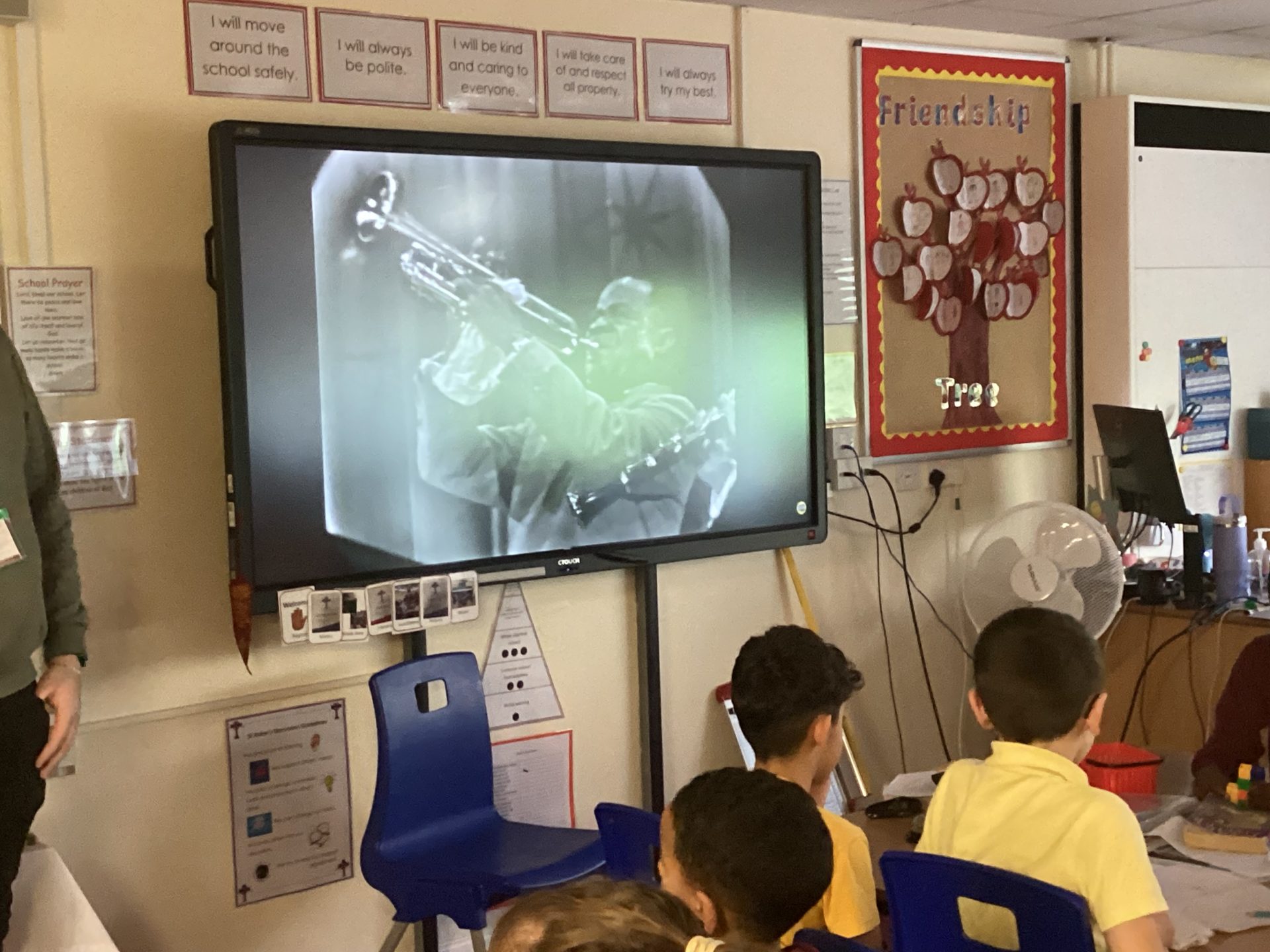 First, we listened to different pieces of Jazz Music, including; Nina Simone and Louie Armstrong. We learnt about a musician called Ella Fitzgerald, who was famous for ‘scatting’, which means improvising on the spot. The children had a chance to make up their own ‘scat’ and perform this at the end of the lesson.