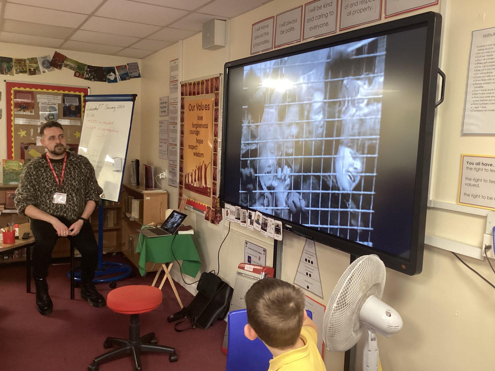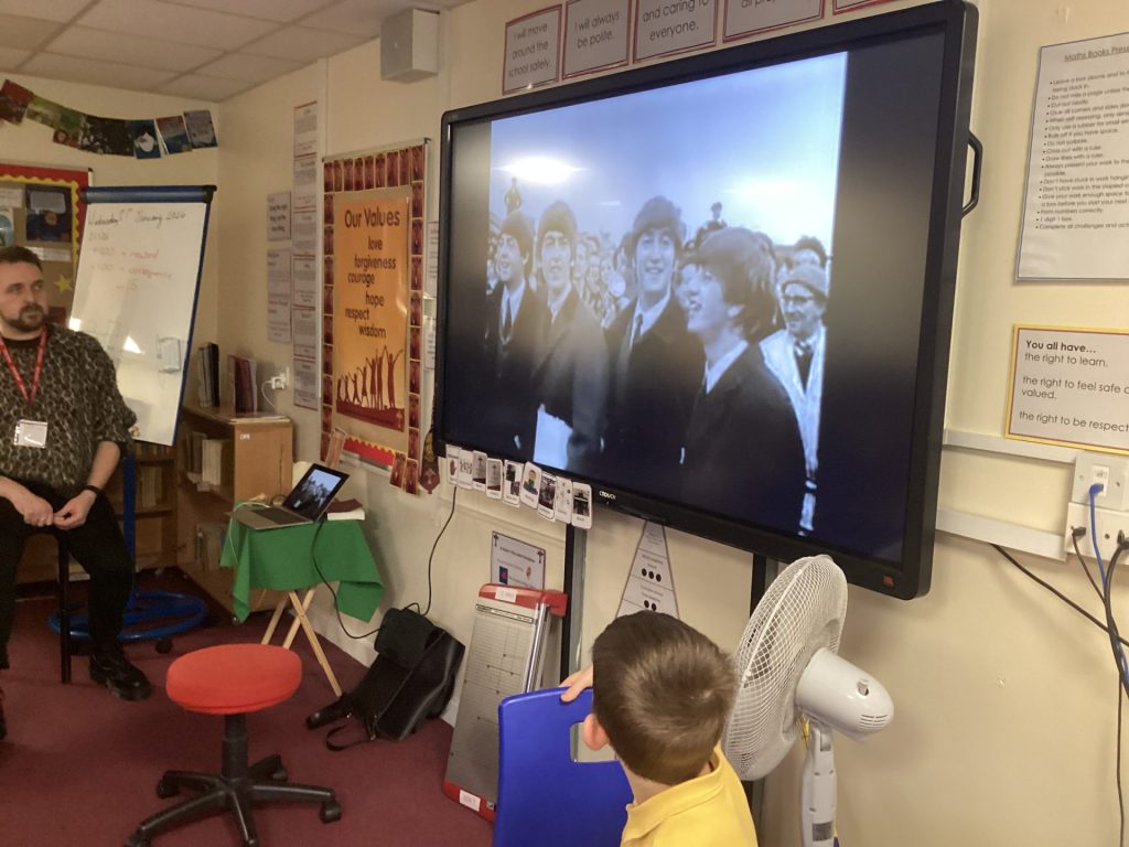 We then looked into music from the 1950’s. We listened to the songs ‘Jailhouse Rock’, ‘Hound dog’ and ‘Rock around the clock’ and learnt this style of music is known as Rock ‘n’ Roll. We learnt that Cliff Richard, who is still alive today, was famous in the 1950’s, because his music was similar to Elvis Presley. Stuart told us that this sort of music was listened to on the radio and television and people would buy record player discs to play at home. Rock ‘n’ Roll developed and started to evolve in America. We discussed how record players have also become more popular over the last decade. We learnt about a musician called Ike Turner, who is married to Tina Turner. He played the guitar. The reason why the word ‘distortion’ came about in the world of music was because of Ike Turner, as his own guitar became distorted. Rock ‘n’ Roll also invented a dance called; The Jive. We also learnt that in the 1950’s, racism was incredibly large. A lot of music performed by black men and women was not allowed to be played over radios and on television. If you were black and if you were on a bus, you were told to sit at the back of the bus. If you were sat on a seat and a white person turned up, they were told to stand up and move. We discussed how times have changed as the years have passed since. ​