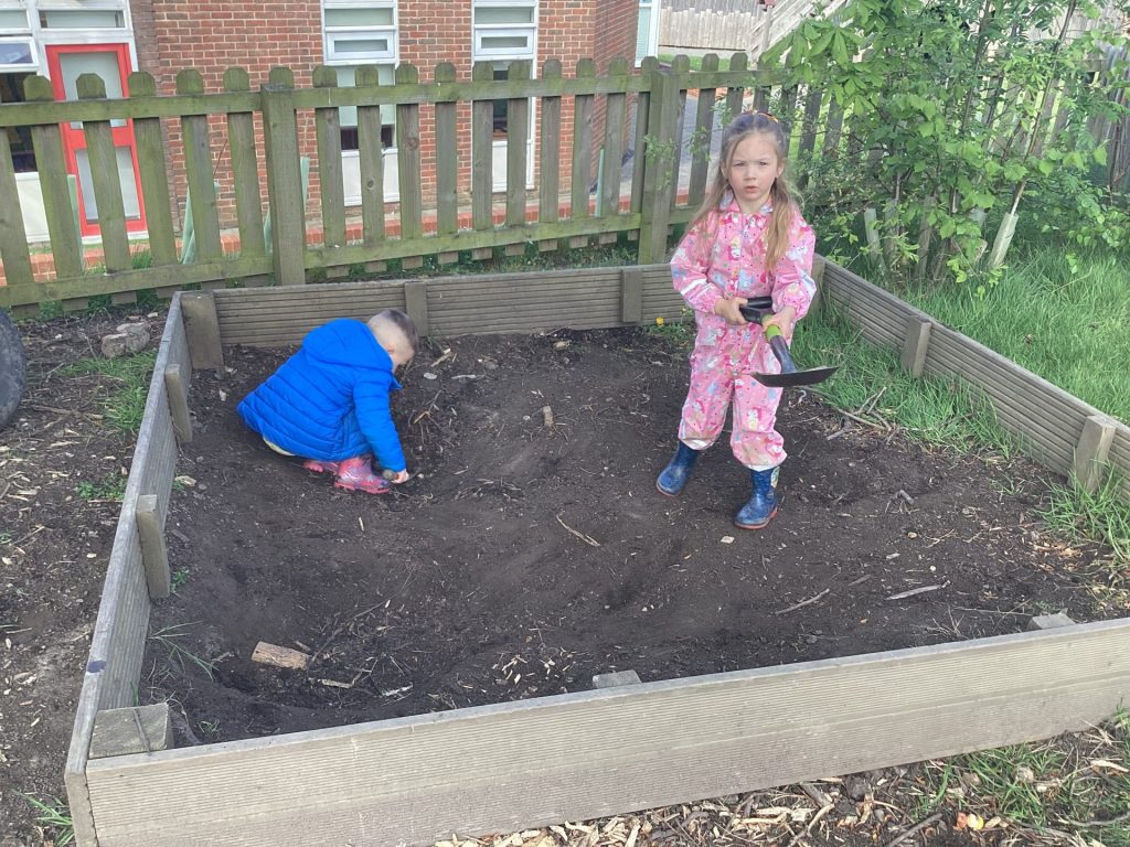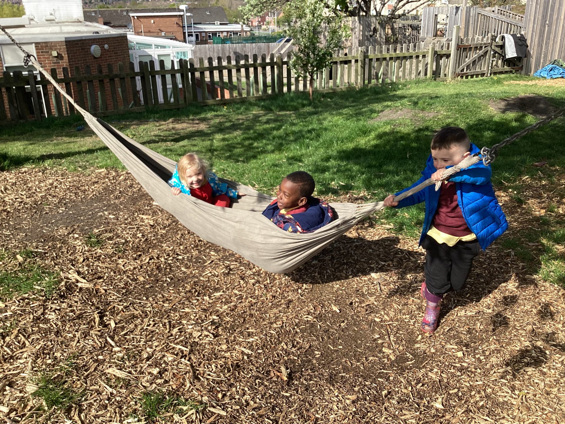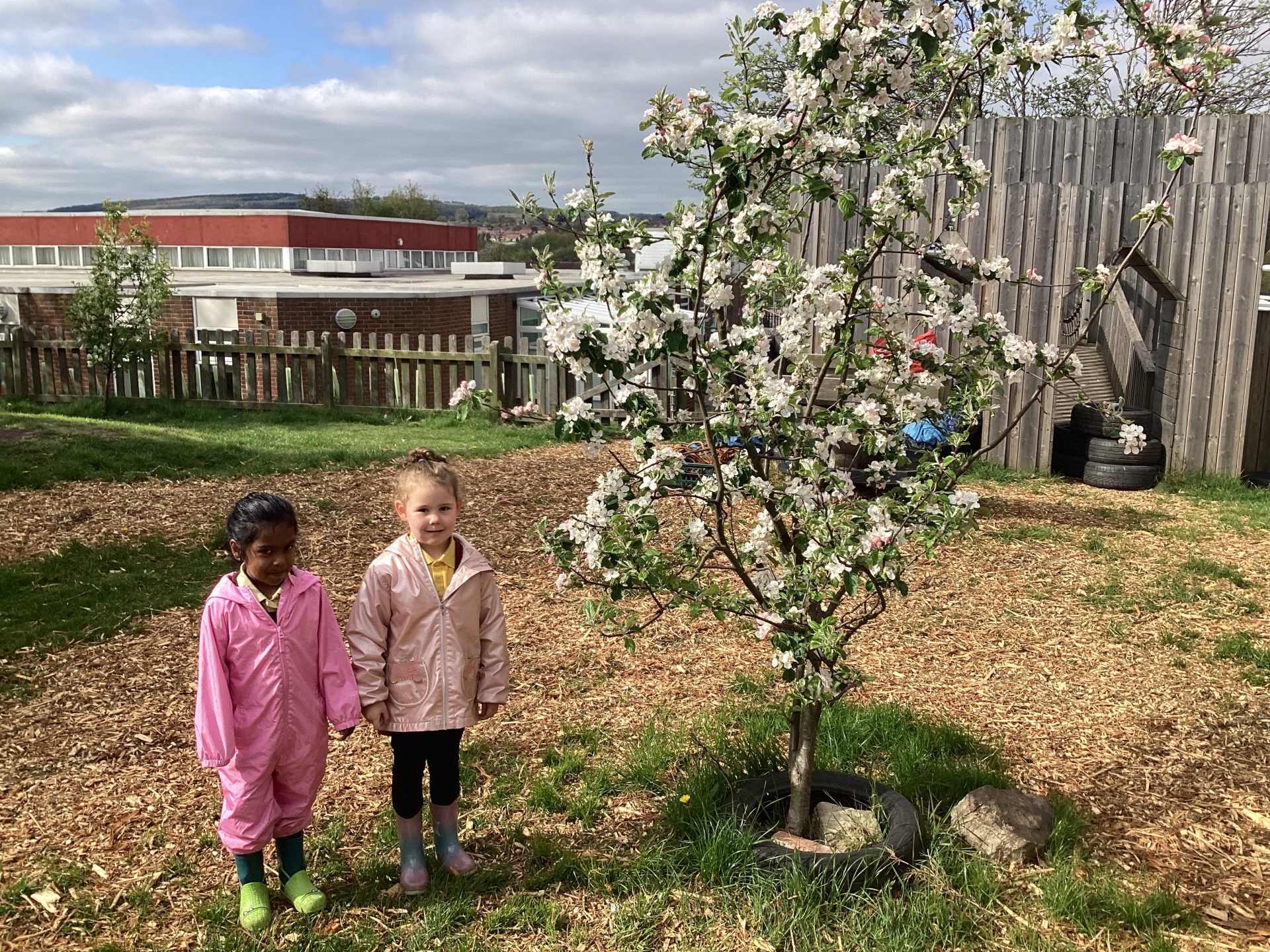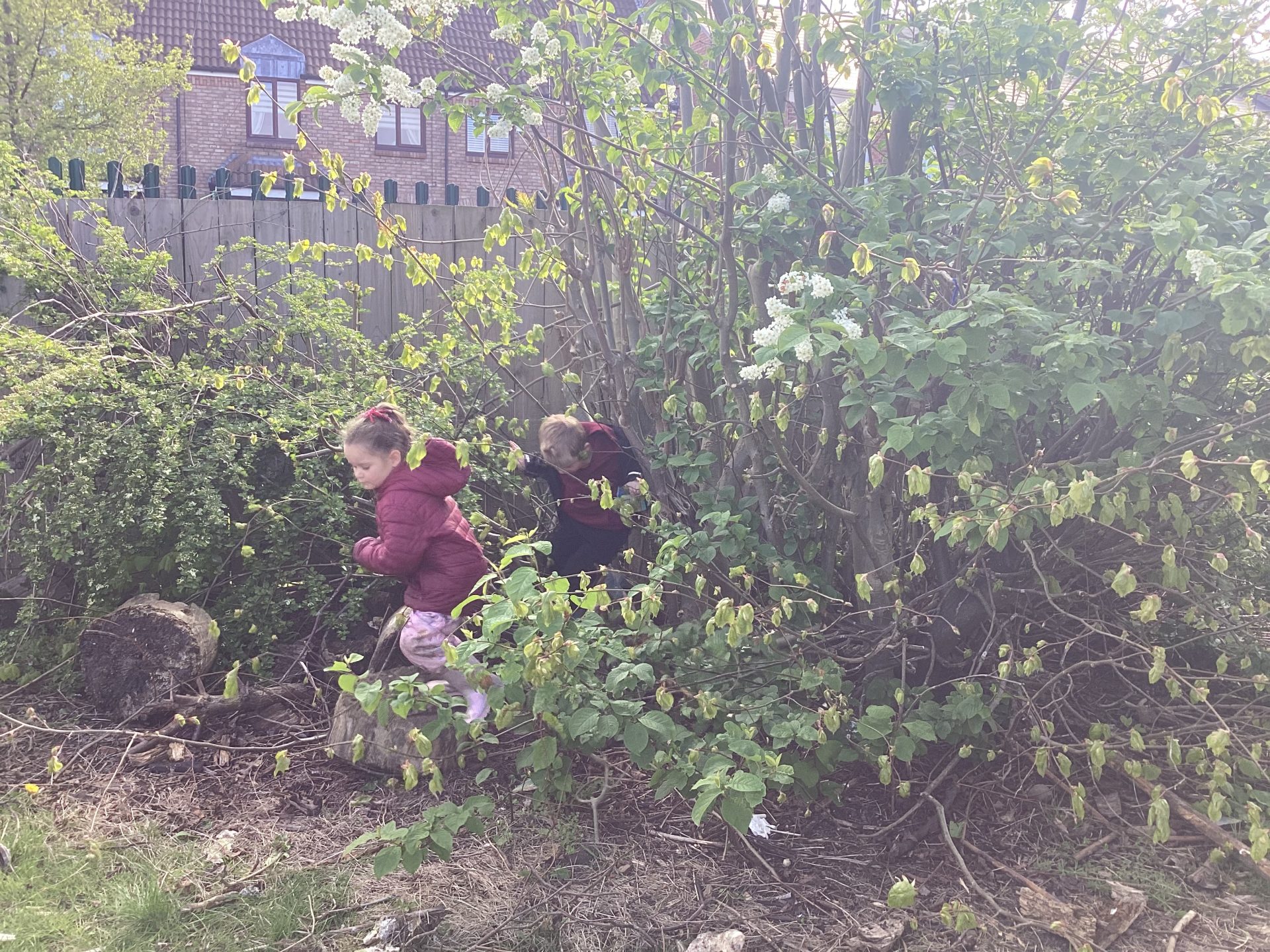 We had lots of fun on the swings and hammock and some of us dug for gold treasure into the digging pits. We also noticed that the blossom tree was full of gorgeous petals and the bushes were a lot thicker with newly grown leaves.