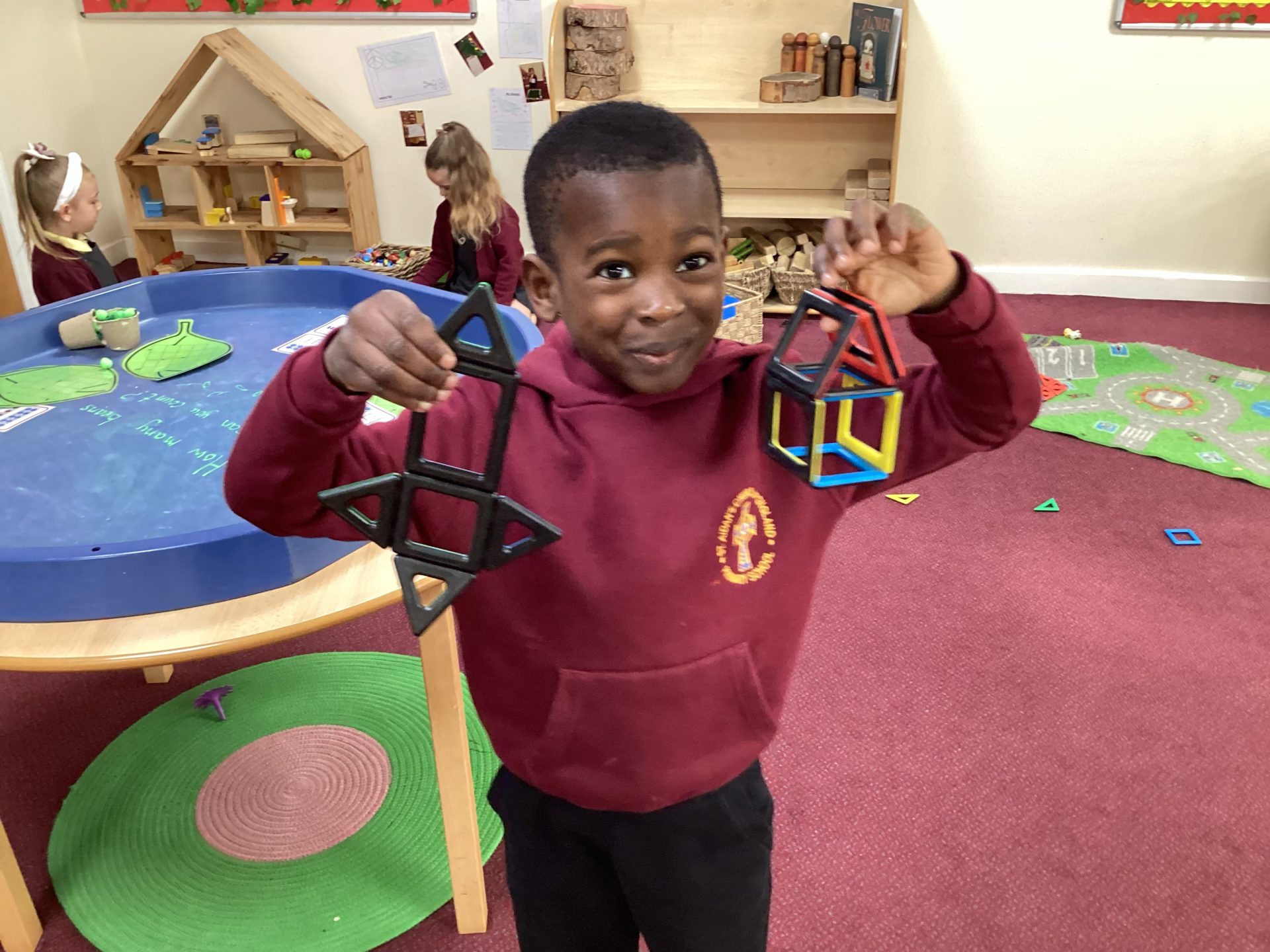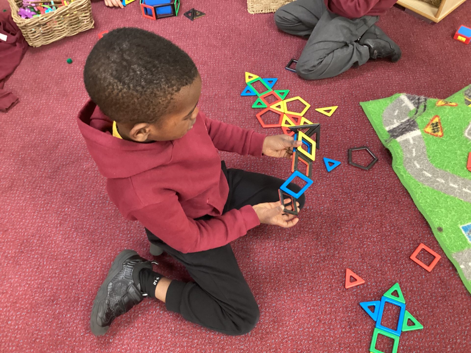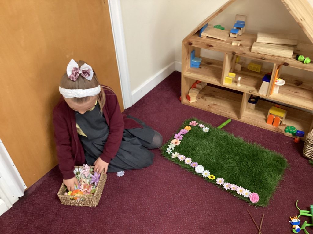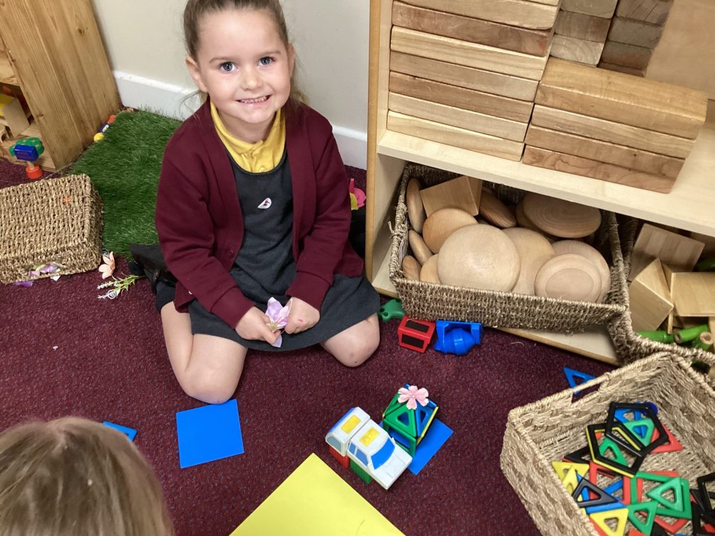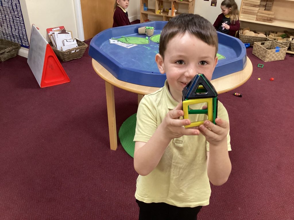 During play time, in the construction area, we decided to make our own houses and creations referring back to the story earlier in the week of what we would want to find at the top of our beanstalk.